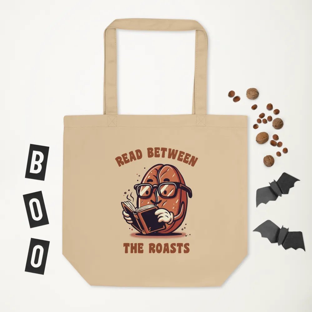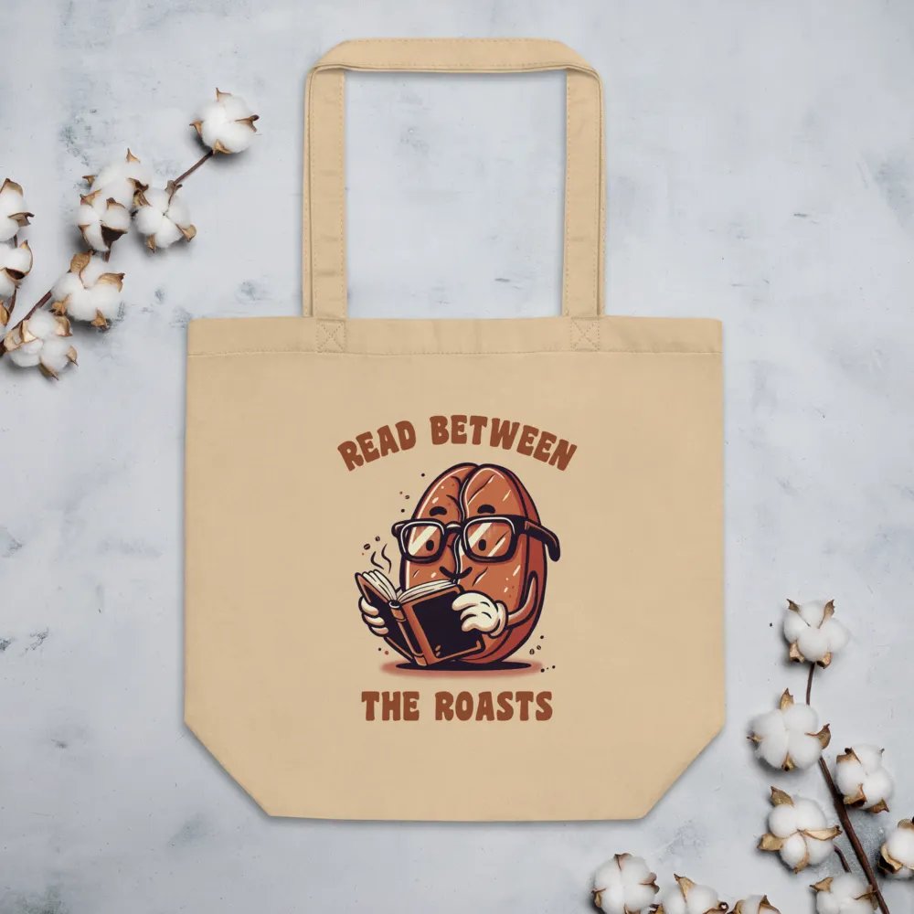 Embrace your love for literature and escape the mundane with our "Read between the roasts" Canvas Tote Bag.