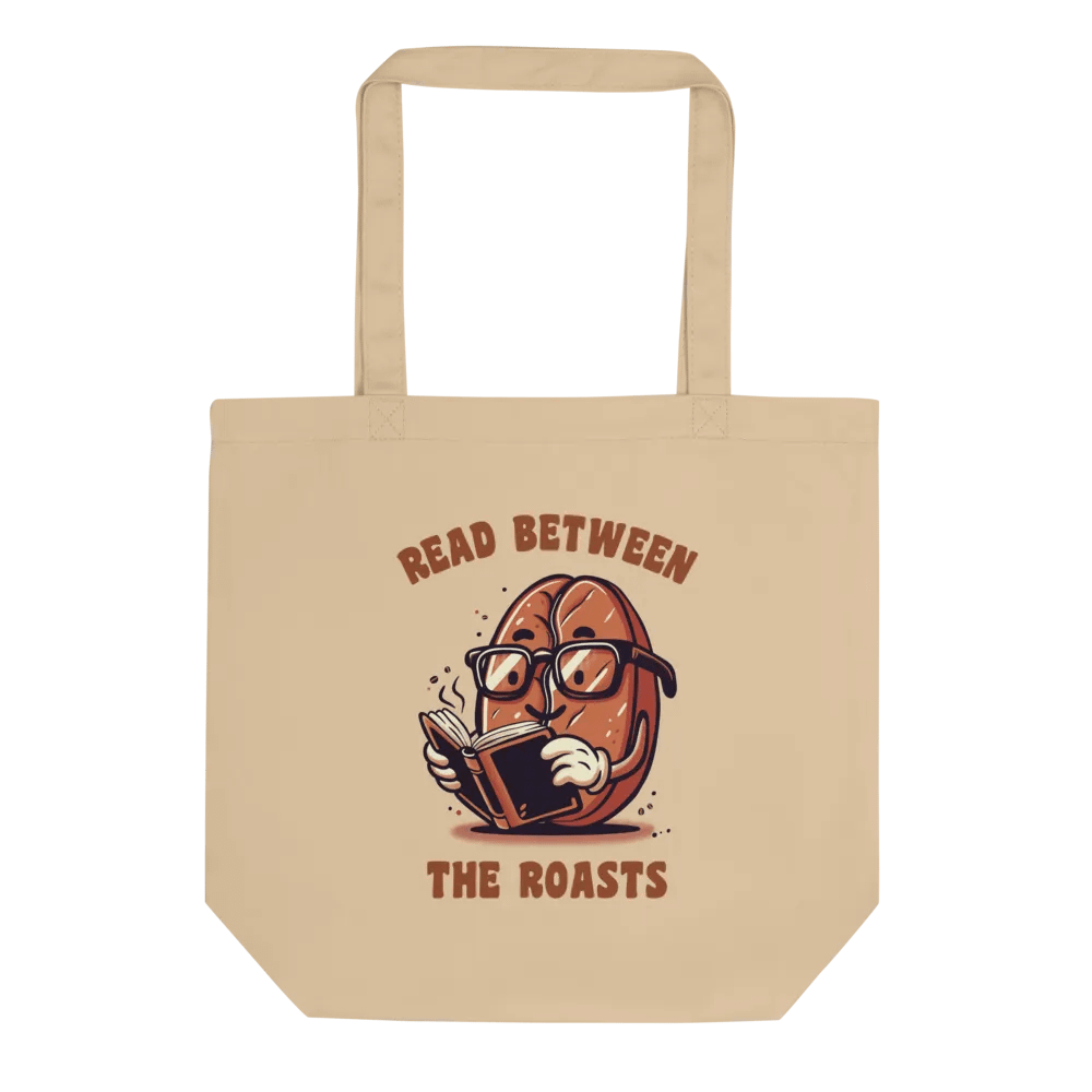 "Read between the roasts" Hand-drawn Canvas Tote Bag