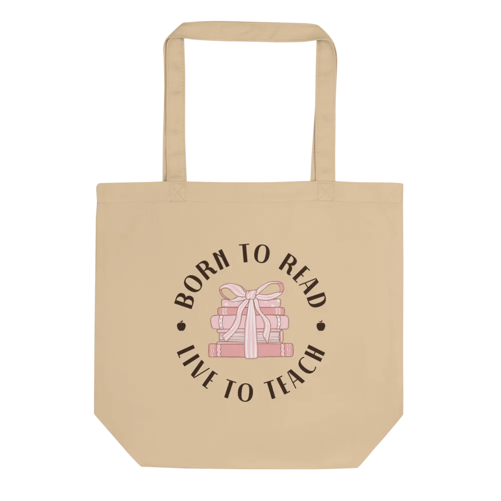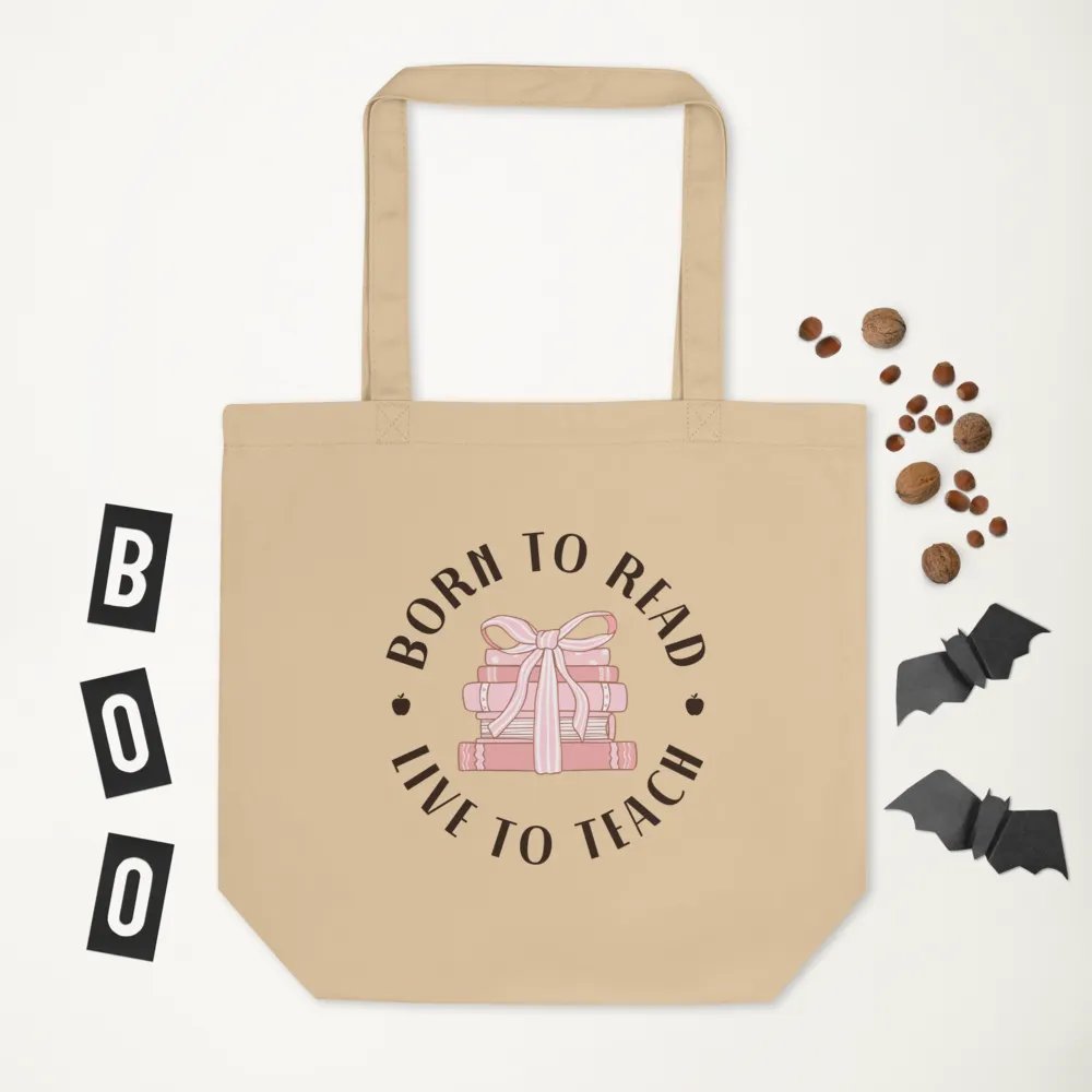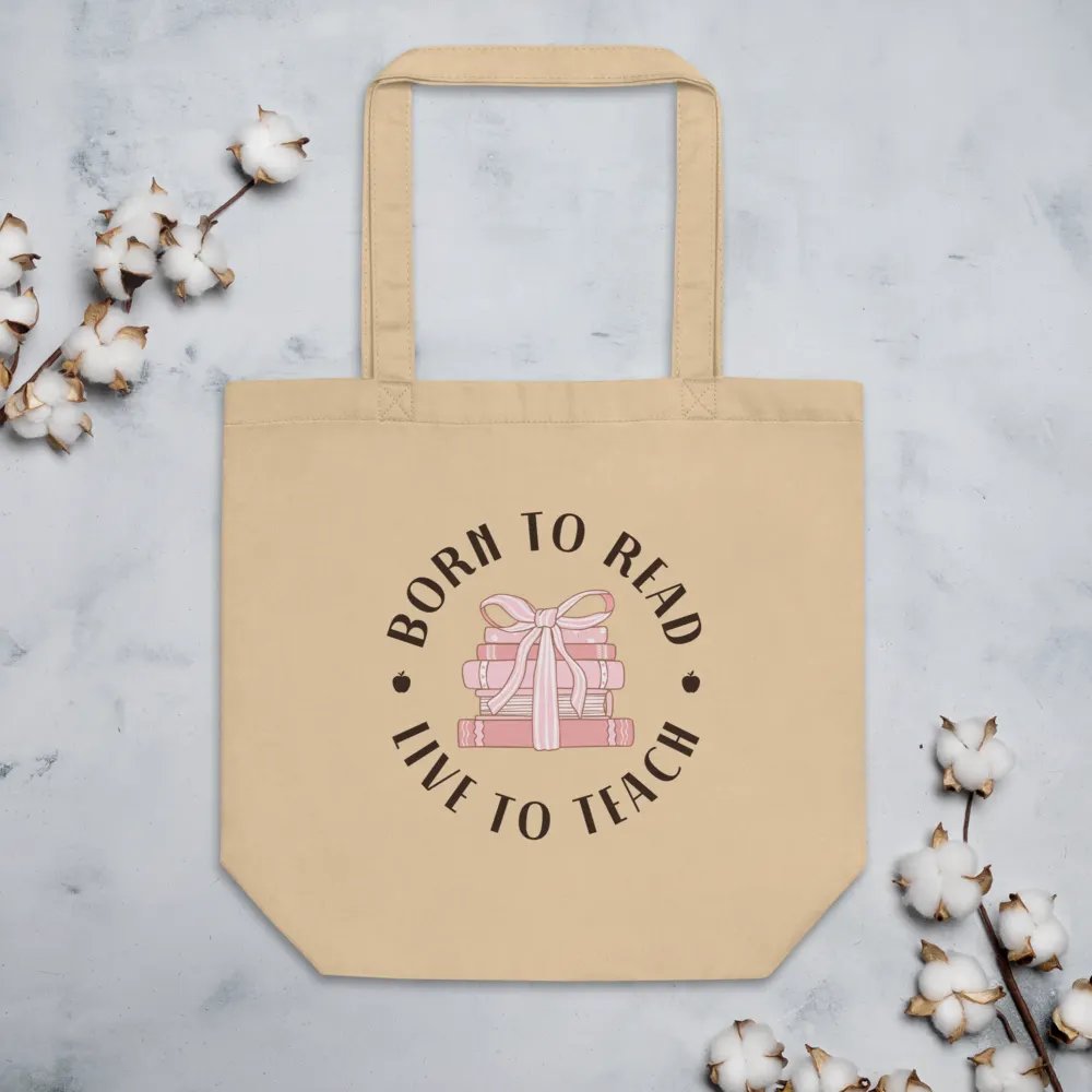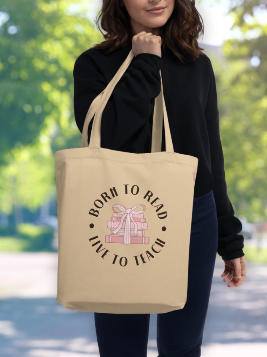 Embrace your love for literature and escape the mundane with our "Born to read, live to teach" Canvas Tote Bag.