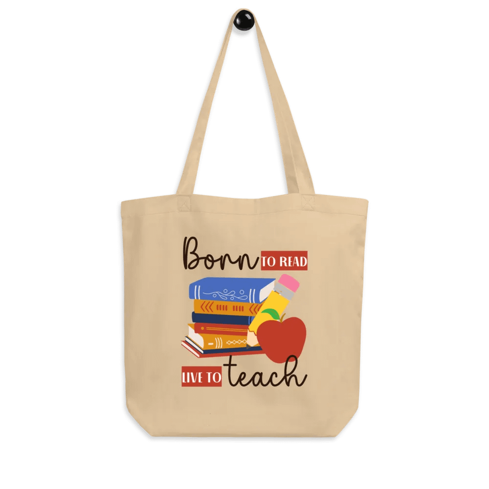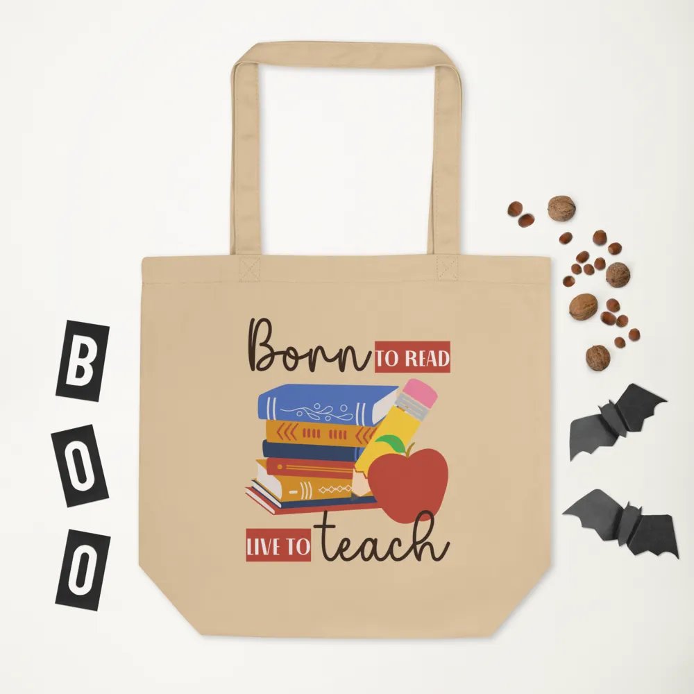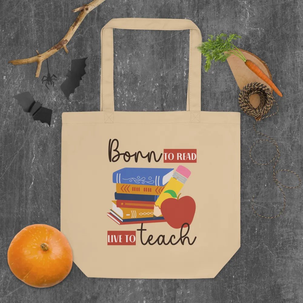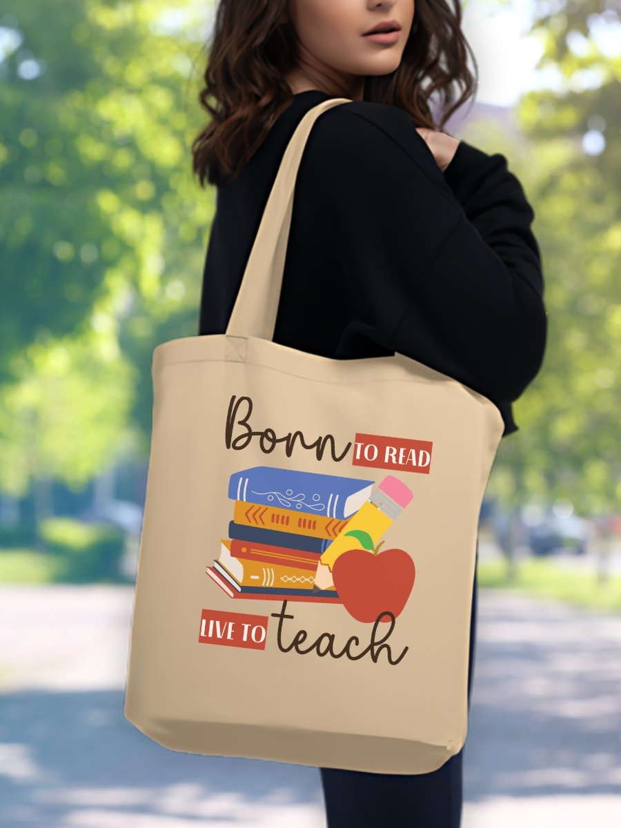 Embrace your love for literature and escape the mundane with our "Born to read, live to teach" Canvas Tote Bag.
