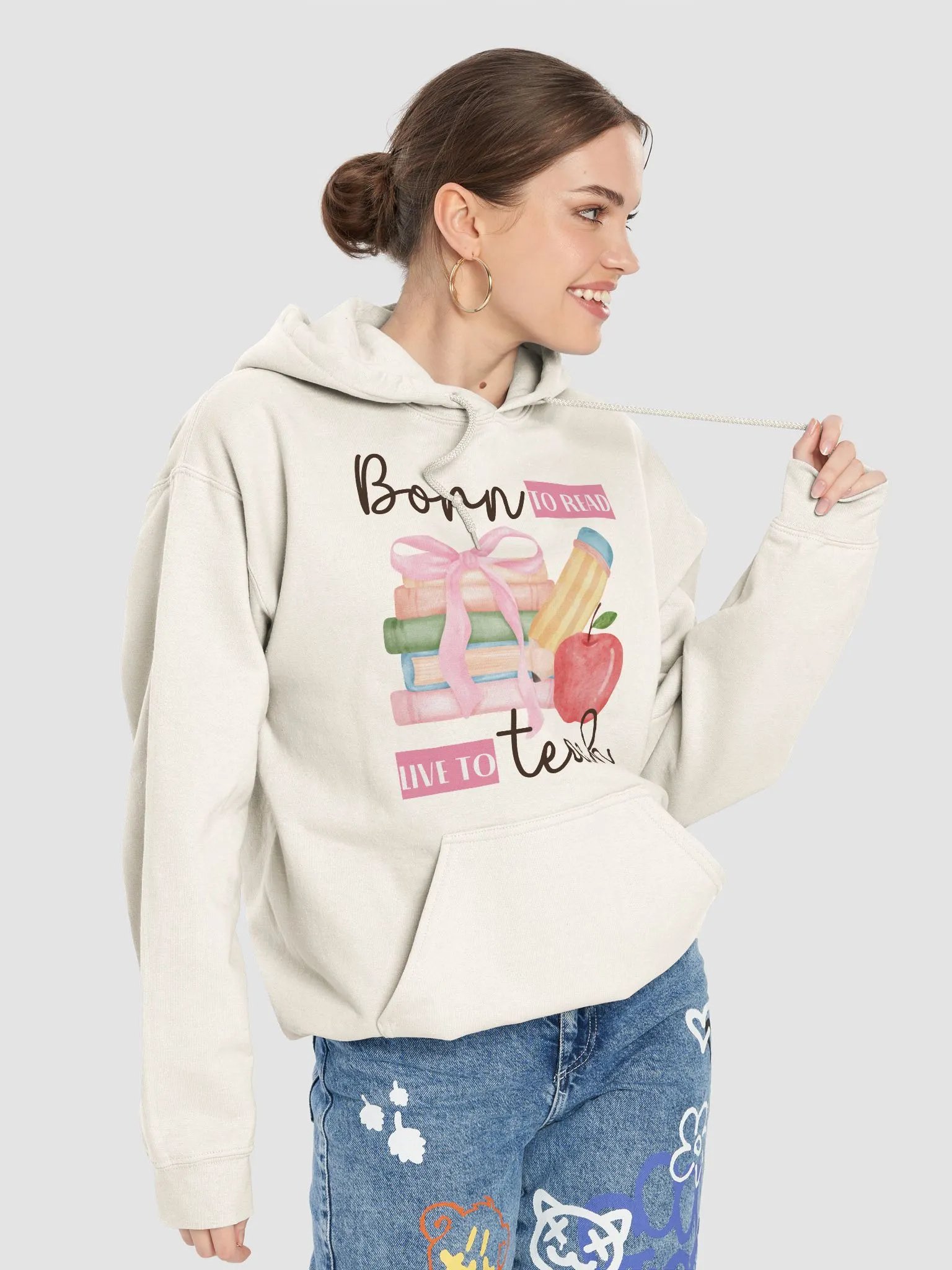 "Born to Read, Live to Teach" Light Hoodie For Book Loving Teacher
